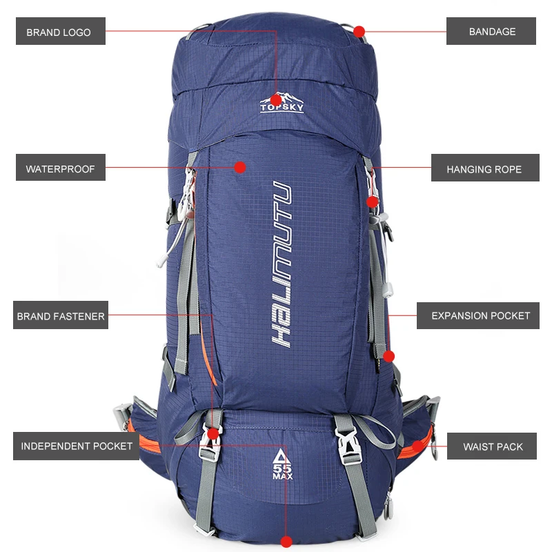 New 55L Camping Outdoor Hiking Backpack Multi-function External Frame Climbing Bag Outdoor Travel Bag P