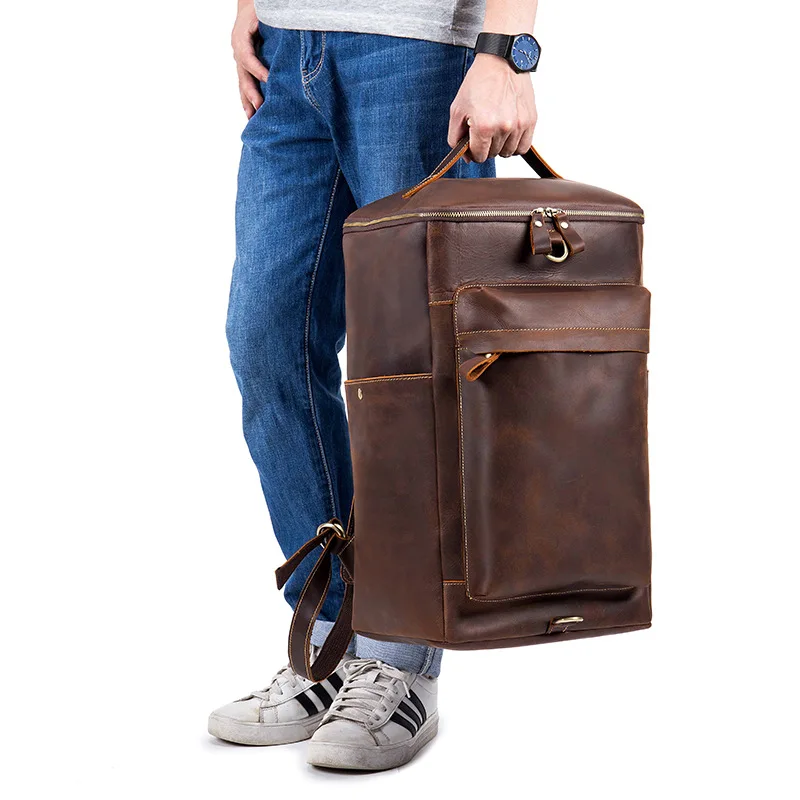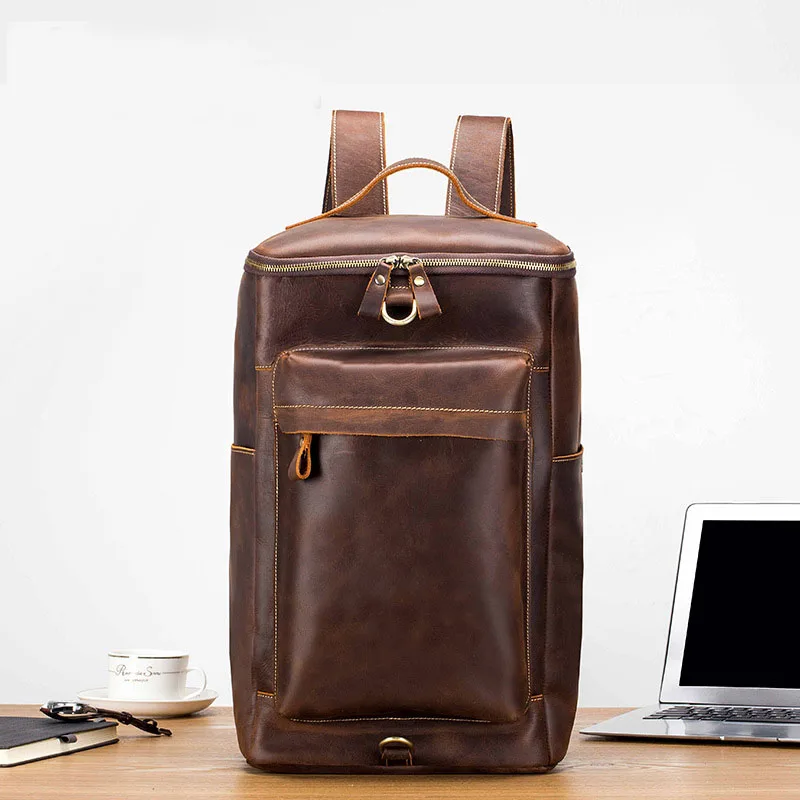 • New Retro Backpack Luxury Mens Cow Leather backpack Bag Large Capacity Travel laptop Bags Collegebags M