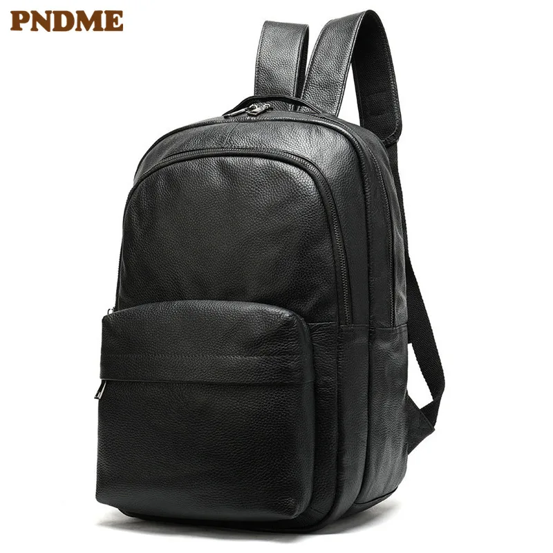 Special PNDME casual genuine leather men's laptop backpack outdoor large capacity travel soft natural top l