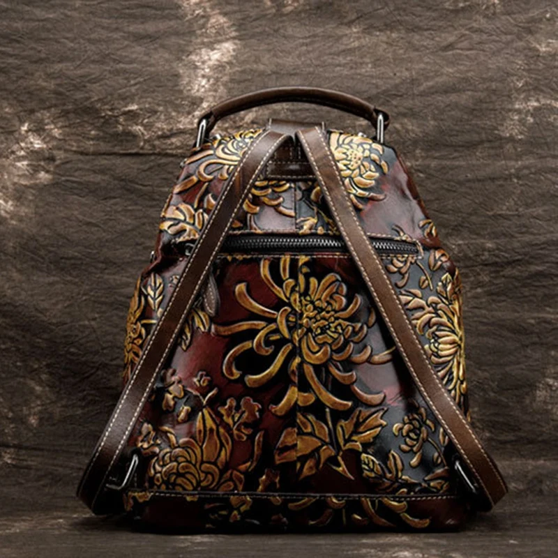 Home » backpack , hot product , travel » Best Women'S Natural Skin Rucksack Backpack Embossed Brush Color Floral Pattern Travel Bag Retro Backpac